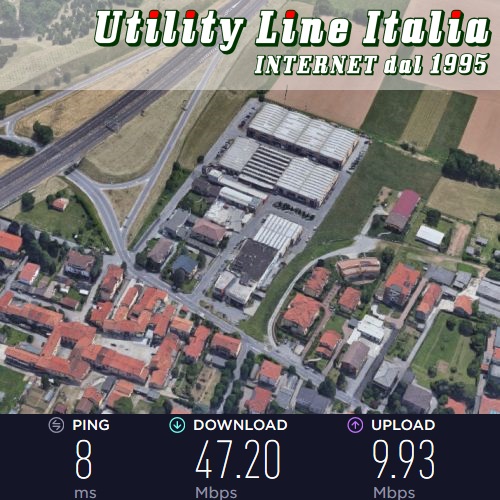 Valori riscontrati: Download=45.6 Mbps - Upload=9.3Mbps