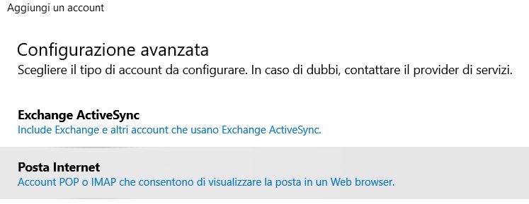 - Dal menù Aggiungi un account scegliere l’opzione "Configurazione avanzata"